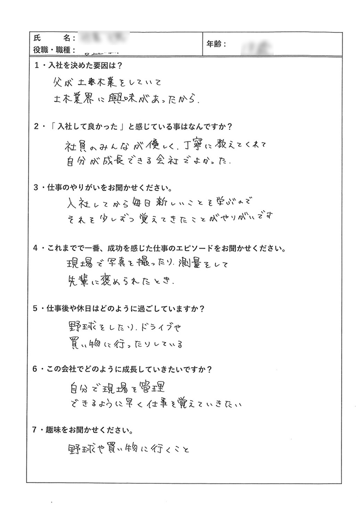 自分で現場を管理できるように早く仕事を覚えていきたい